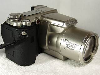 かなりの異色のデジカメである。 35mm換算38mm〜380mmの手ぶれ補正機能と実売価格5万円弱(発売から2年程経過していたので激安)につられて買ってしまった。 E-10を衝動買いしたのと同時期に欲しいなと思っていた機種だったので、いまさらながら結局買っちゃった(苦笑)という感じである。 CCDは1/2インチで出力される画像の大きさは1600x1200。 |